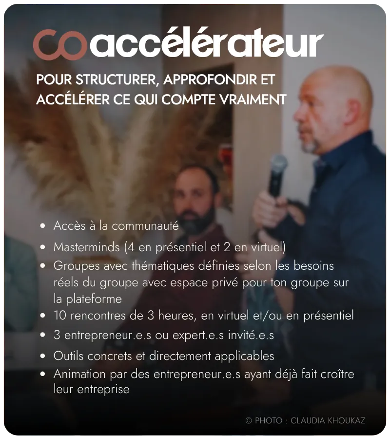 Pour les entrepreneur.e.s qui veulent aller en profondeur sur des sujets clés avec une approche structurée et concrète.