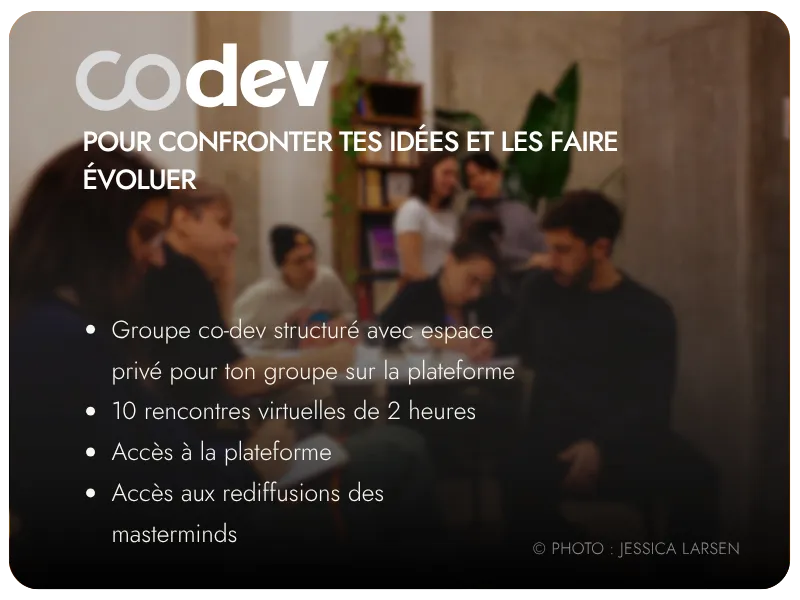 Pour les entrepreneur.e.s qui veulent travailler en profondeur sur leurs enjeux et faire évoluer leurs idées.